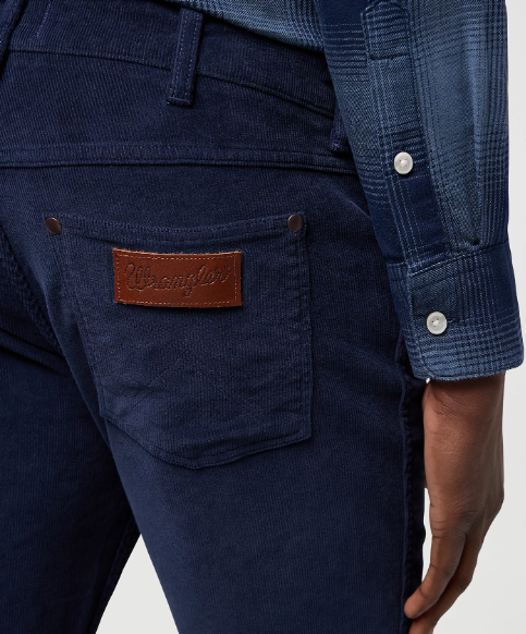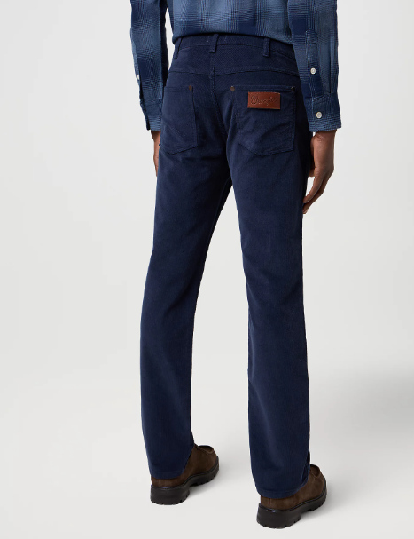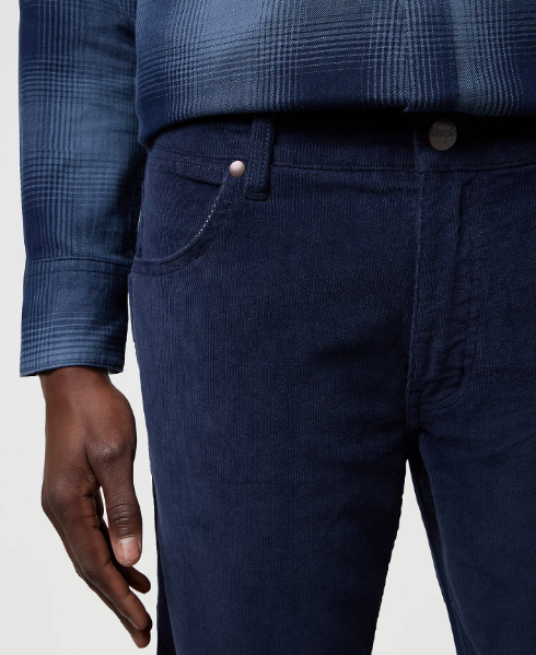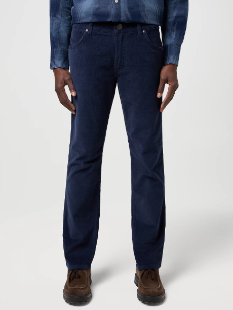 Wrangler Greensboro Fløjl Navy Pasform: Regular Fit Lukning: lynlås Livhøjde: normal Materiale: 98% bomuld, 2% elasthan Plejeanvisning: maskinvask ved 40°C