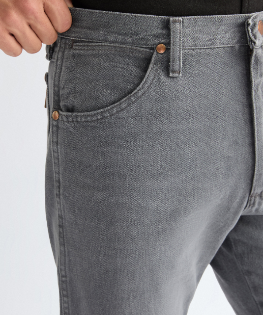 Funktionerne inkluderer 7 bæltestropper, en lynlåsgylp med knaplukning, fuldt brændende ydre sømme, flade nitter, de ikoniske 'W'-sømme og signatur Wrangler-branding.